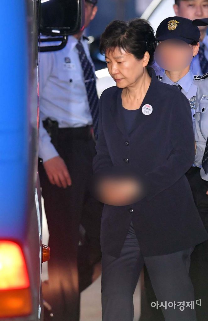 [아시아경제 백소아 기자] 삼성 등 대기업에서 총 592억원의 뇌물을 받거나 요구·약속한 혐의 등으로 구속기소 된 박근혜 전 대통령이 23일 오후 재판을 마친 후 구치소로 향하는 호송차에 오르고 있다.백소아 기자 sharp2046@asiae.co.kr<ⓒ세계를 보는 창 경제를 보는 눈, 아시아경제(www.asiae.co.kr) 무단전재 배포금지>