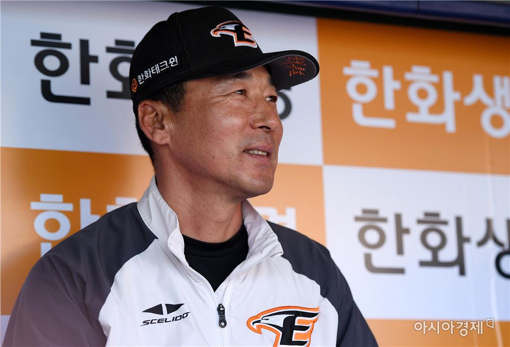 [대전=아시아경제 김현민 기자]24일 대전구장에서 열릴 프로야구 KIA 타이거즈와 한화 이글스의 2017 KBO리그 경기에 앞서 한화 이상군 감독대행이 취재진과 이야기를 나누고 있다. 김현민 기자 kimhyun81@asiae.co.kr<ⓒ세계를 보는 창 경제를 보는 눈, 아시아경제(www.asiae.co.kr) 무단전재 배포금지>