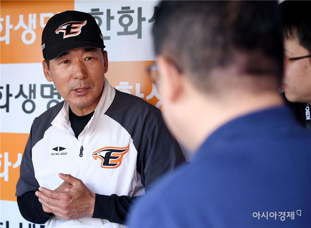 [대전=아시아경제 김현민 기자]24일 대전구장에서 열릴 프로야구 KIA 타이거즈와 한화 이글스의 2017 KBO리그 경기에 앞서 한화 이상군 감독대행이 취재진과 이야기를 나누고 있다. 김현민 기자 kimhyun81@asiae.co.kr<ⓒ세계를 보는 창 경제를 보는 눈, 아시아경제(www.asiae.co.kr) 무단전재 배포금지>
