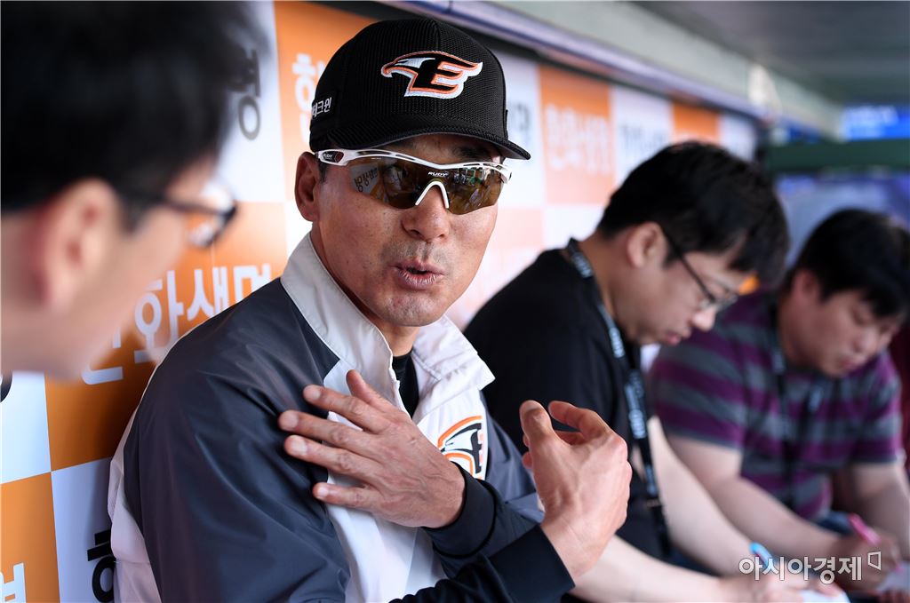 [대전=아시아경제 김현민 기자]24일 대전구장에서 열릴 프로야구 KIA 타이거즈와 한화 이글스의 2017 KBO리그 경기에 앞서 한화 이상군 감독대행이 취재진과 이야기를 나누고 있다. 김현민 기자 kimhyun81@asiae.co.kr<ⓒ세계를 보는 창 경제를 보는 눈, 아시아경제(www.asiae.co.kr) 무단전재 배포금지>