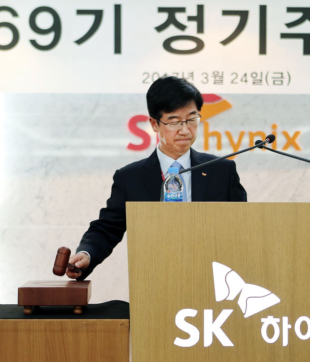 박성욱 SK하이닉스 부회장이 24일 열린 정기 주주총회를 진행하고 있다.(사진=SK하이닉스)