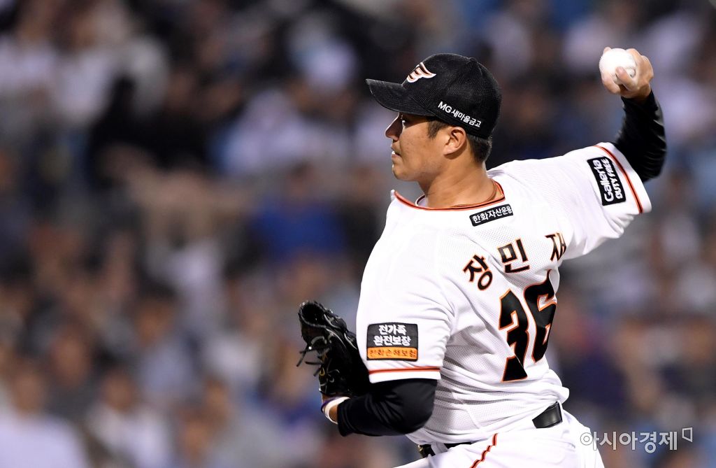 [대전=아시아경제 김현민 기자]프로야구 KIA 타이거즈와 한화 이글스의 2017 KBO리그 경기가 24일일 대전구장에서 열렸다. 한화 구원투수 장민재가 4회초 역투하고 있다. 김현민 기자 kimhyun81@asiae.co.kr<ⓒ세계를 보는 창 경제를 보는 눈, 아시아경제(www.asiae.co.kr) 무단전재 배포금지>