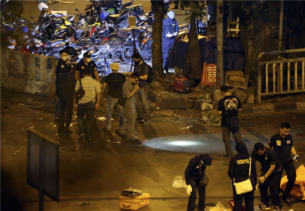 [아시아경제 노미란 기자] 인도네시아 경찰들이 자살 폭탄 테러로 추정되는 폭발이 발생한 자카르타 시내 버스 정류장에서 현장을 조사하고 있다. 이날 폭발로 최소 3명이 사망하는 등 인명피해가 발생했다. (사진출처=AP연합)노미란 기자 asiaroh@asiae.co.kr<ⓒ세계를 보는 창 경제를 보는 눈, 아시아경제(www.asiae.co.kr) 무단전재 배포금지>