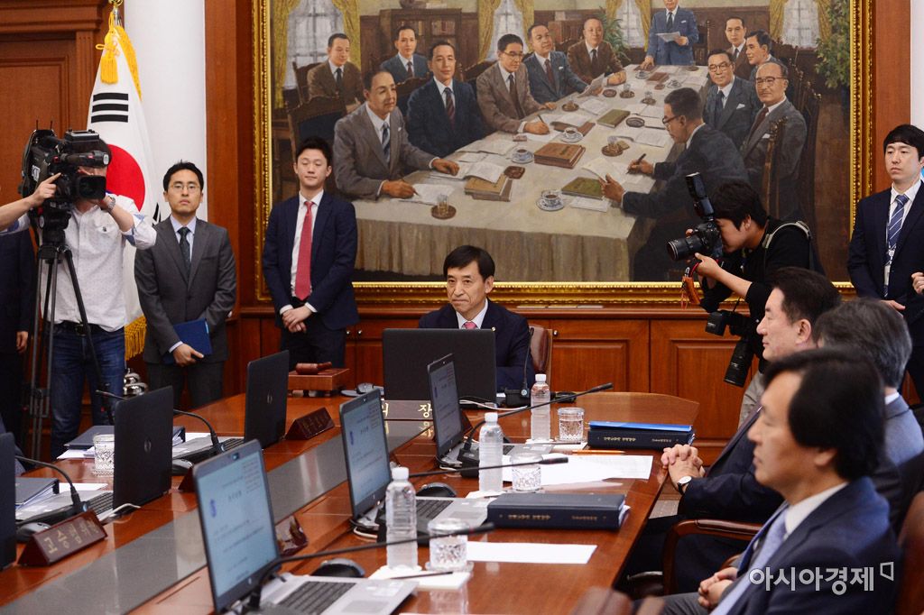 [아시아경제 문호남 수습기자] 이주열 한국은행 총재가 25일 서울 중구 남대문로 한국은행 본관에서 문재인 정부 출범 이후 처음 열린 금융통화위원회 본회의를 주재하고 있다.문호남 수습기자 munonam@asiae.co.kr<ⓒ세계를 보는 창 경제를 보는 눈, 아시아경제(www.asiae.co.kr) 무단전재 배포금지>