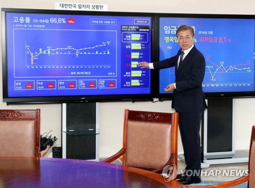 문재인 대통령 일자리 상황판(사진:연합뉴스)