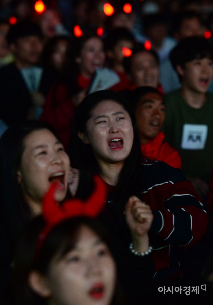 [아시아경제 문호남 수습기자] 2017 FIFA U-20 월드컵 조별예선 A조 3차전 잉글랜드 경기가 열린 23일 서울 종로구 광화문광장에서 U-20 태극전사의 선전을 기원하는 시민들이 후반 11분 잉글랜드 도웰이 선제골을 넣자 안타까운 표정을 짓고 있다. 문호남 수습기자 munonam@asiae.co.kr<ⓒ세계를 보는 창 경제를 보는 눈, 아시아경제(www.asiae.co.kr) 무단전재 배포금지>
