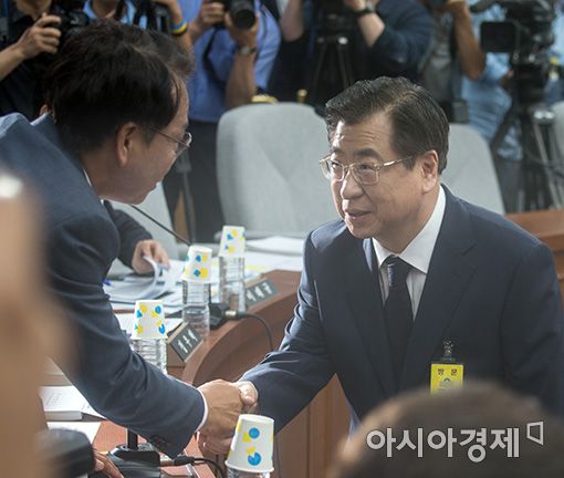 [아시아경제 윤동주 기자] 서훈 국정원장 후보자가 29일 국회에서 열린 인사청문회에 출석, 이완영 자유한국당 의원과 인사를 나누고 있다.윤동주 기자 doso7@asiae.co.kr<ⓒ세계를 보는 창 경제를 보는 눈, 아시아경제(www.asiae.co.kr) 무단전재 배포금지>