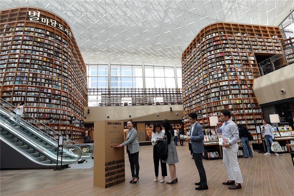 30일 강남구 삼성동 스타필드 코엑스몰에 사전 개장한 복합 문화공간 '별마당 도서관'에서 시민들이 도서를 기증하고 있다.<br /> <br /> <br /> <br /> <br />