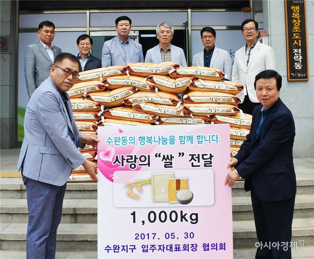 [아시아경제 노해섭 기자]광주 광산구 수완동 주민들이 더불어 사는 공동체를 향한 발걸음에 속도를 더하고 있다.수완지구 입주자대표회장 협의회(회장 이장연·이하 ‘수대협’)는 30일 쌀 1000kg을 수완동에 전달했다. 수대협은 이웃돕기를 위해 자체적으로 성금을 마련해 쌀을 전달했다. 수완동은 수대협의 기탁한 쌀을 이웃과 고루 나눌 계획이다. 수대협은 올해 하반기에도 쌀 1000kg 이상을 마련해 전달할 계획이다.수완지구 조성 당시 결성한 수대협은 현재 33개 아파트 회장들이 참가하고 있다. 지난해 버스노선 신설과 신창IC 진출입로 확장 공사 개시를 위해 관계 기관과 협의해 성사시킨 성과가 있다.같은날 수완동 지사협은 경로당에 노래방 기계를 선물했다. 지난 5월 경로당 프로그램 수요 조사를 하면서 어르신들이 가장 원하는 사항인 ‘노래방 기계’소원을 해결한 것.수완동 지사협은 휴먼시아아파트 5개 단지 경로당에 노래방 기계 각 1대씩을 들여놨다. 또 2개 단지 경로당의 고장난 노래방 기계도 이날 말끔히 수리했다. 노해섭 기자 nogary@<ⓒ세계를 보는 창 경제를 보는 눈, 아시아경제(www.asiae.co.kr) 무단전재 배포금지>