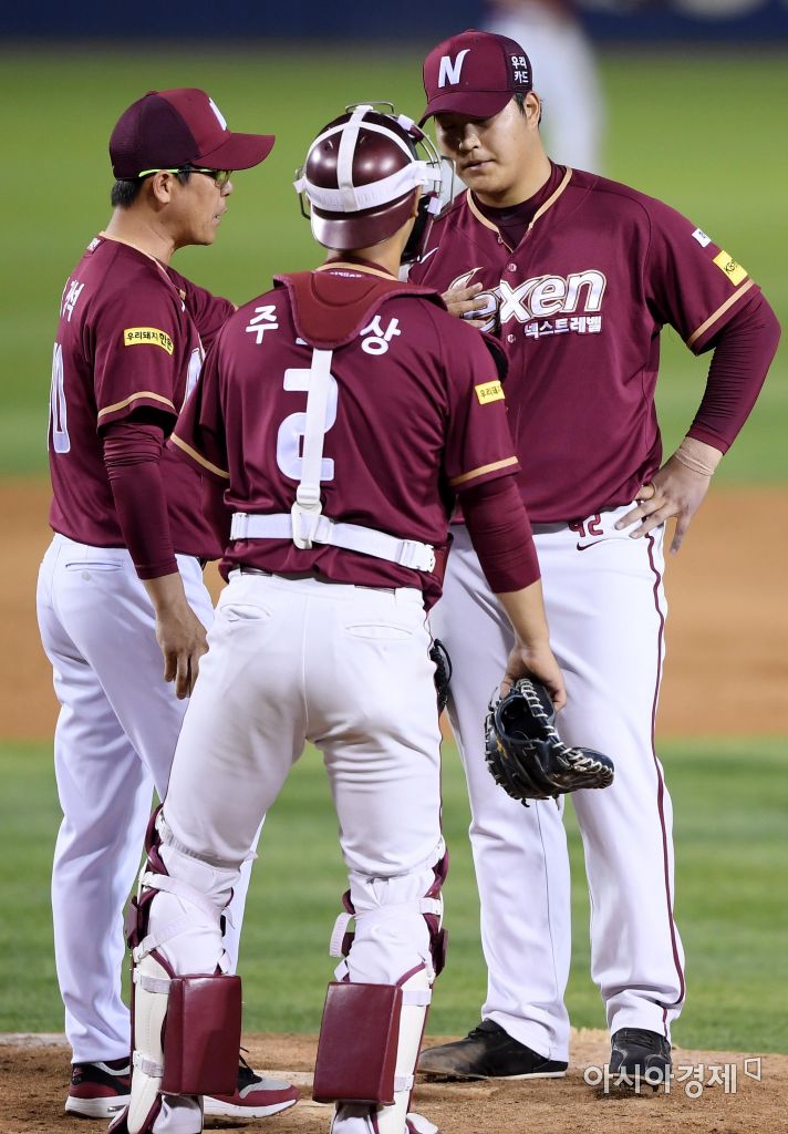 [아시아경제 김현민 기자]프로야구 넥센 히어로즈와 LG 트윈스의 2017 KBO리그 경기가 31일 잠실구장에서 열렸다. 6회말 2사 1,3루의 위기에서 넥센 장정석 감독이 선발 조상우를 마운드에서 내리고 있다. 김현민 기자 kimhyun81@asiae.co.kr<ⓒ세계를 보는 창 경제를 보는 눈, 아시아경제(www.asiae.co.kr) 무단전재 배포금지>