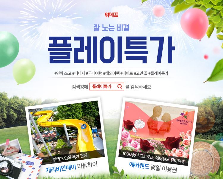 [아시아경제 김유리 기자] 위메프가 '플레이특가'를 통해 여름휴가를 겨냥한 다채로운 특가 상품을 선보이고 있다고 1일 밝혔다. 이번 플레이특가에서는 이른 더위에 수영장 등을 계획하는 고객들을 위해 캐리비안베이의 미들·하이 시즌 입장권과 독일식 온천 리조트 테르메덴 입장권 등을 단독 판매한다. 뮤지컬 드림걸즈 내한공연 1만9900원, 탐앤탐스 커피 2900원, 대구 이월드 1만4900원, 한국민속촌 2만9900원 등 풍성한 즐길 거리를 파격 특가에 제공한다.플레이특가는 국내·외 여행, 항공권과 각종 워터파크, 놀이공원, 아쿠아리움, 공연, 맛집, 키즈카페 등의 특가 이벤트를 진행해 온 서비스다. 1월에 처음 선보인 이후 4개월 동안 딜 개수는 182%, 취급고는 277% 증가했다.위메프는 "현재 플레이특가에서는 이름 여름휴가를 맞이해 특가 딜을 다채롭게 선보이고 있다"며 "앞으로도 시즌 이슈에 맞는 특가 상품들을 지속적으로 확대해 나갈 예정"이라고 말했다.김유리 기자 yr61@asiae.co.kr<ⓒ세계를 보는 창 경제를 보는 눈, 아시아경제(www.asiae.co.kr) 무단전재 배포금지>