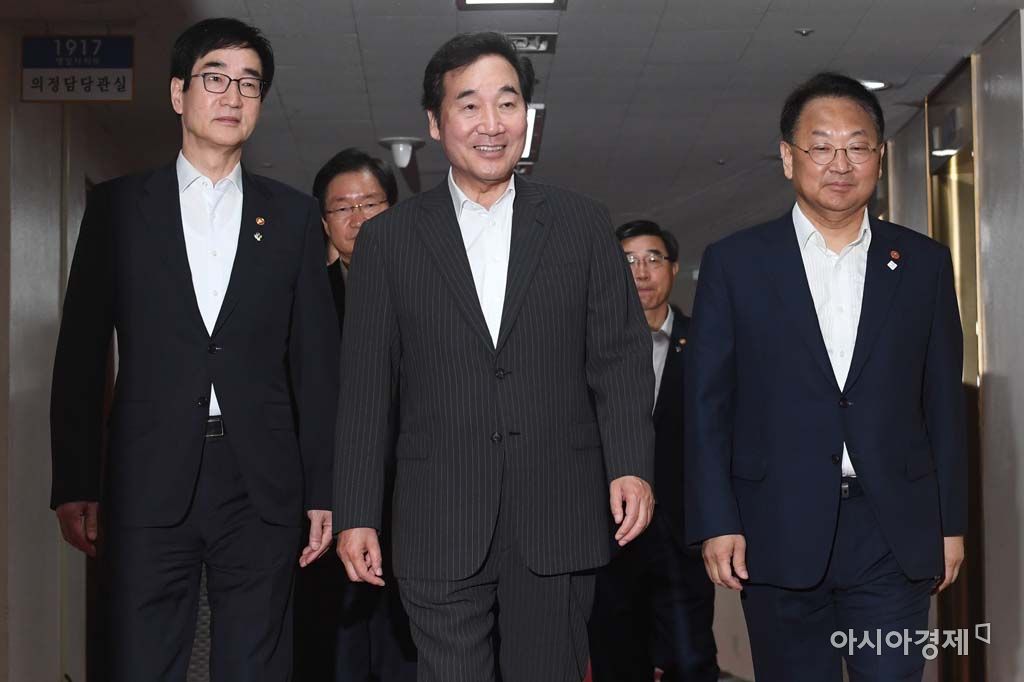 [아시아경제 백소아 기자] 이낙연 국무총리(가운데)가 5일 서울 세종로 정부서울청사에서 열린 국무회의에 참석하기 위해 회의실로 이동하고 있다. 이준식 사회부총리, 이 총리, 유일호 경제부총리(왼쪽부터)백소아 기자 sharp2046@asiae.co.kr<ⓒ세계를 보는 창 경제를 보는 눈, 아시아경제(www.asiae.co.kr) 무단전재 배포금지>