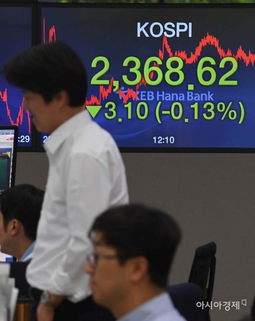 [아시아경제 백소아 기자] 5일 서울 중구 KEB하나은행 본점 딜링룸에서 외환 딜러들이 업무를 보고 있다. 이날 코스피 지수는 개장초 사상 최고치(2372.65p)를 기록했지만 3.10p 내린 2368.62p에 장을 마쳤다.백소아 기자 sharp2046@asiae.co.kr<ⓒ세계를 보는 창 경제를 보는 눈, 아시아경제(www.asiae.co.kr) 무단전재 배포금지>