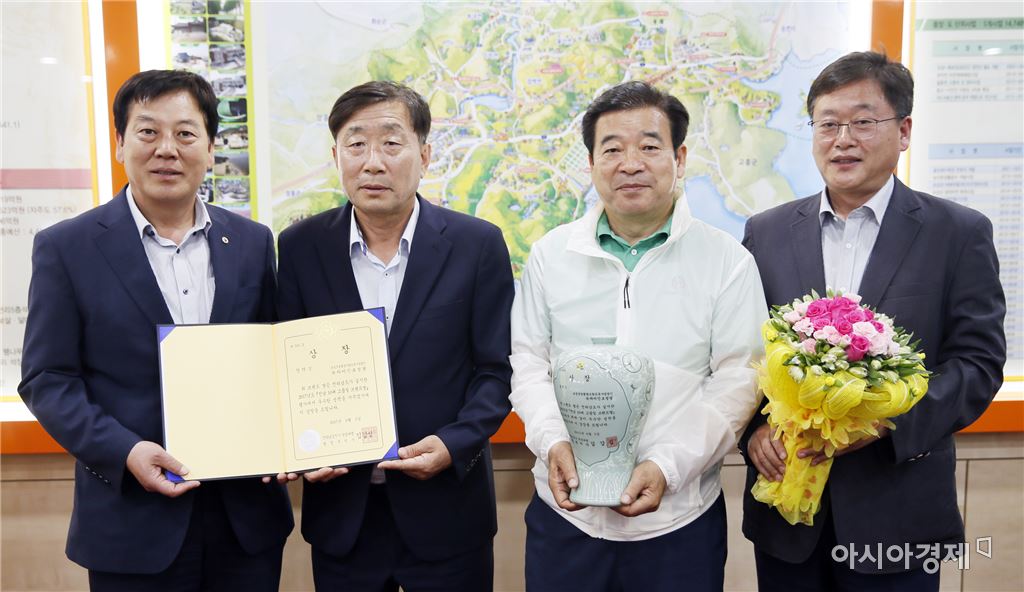 문진주 농업기술센터소장 , 안종환 보성농협쌀조합공동사업법인대표, 이용부 보성군수, 강원석 유통원예과장이 기념촬영을 하고있다.[왼쪽부터]