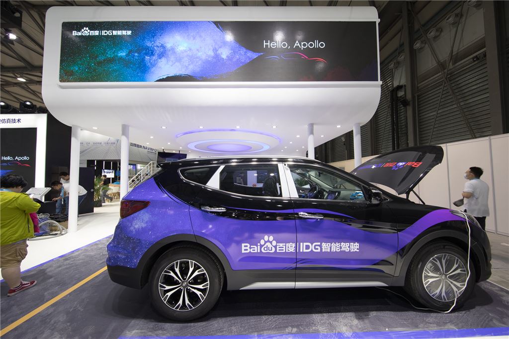 7일 중국 상해 신국제엑스포센터에서 개막한 'CES 아시아' 바이두 전시장에 '바이두 맵오토'와 '두어 OS 오토'가 시범적용된 현대차 중국형 싼타페가 전시 돼있다.<br />