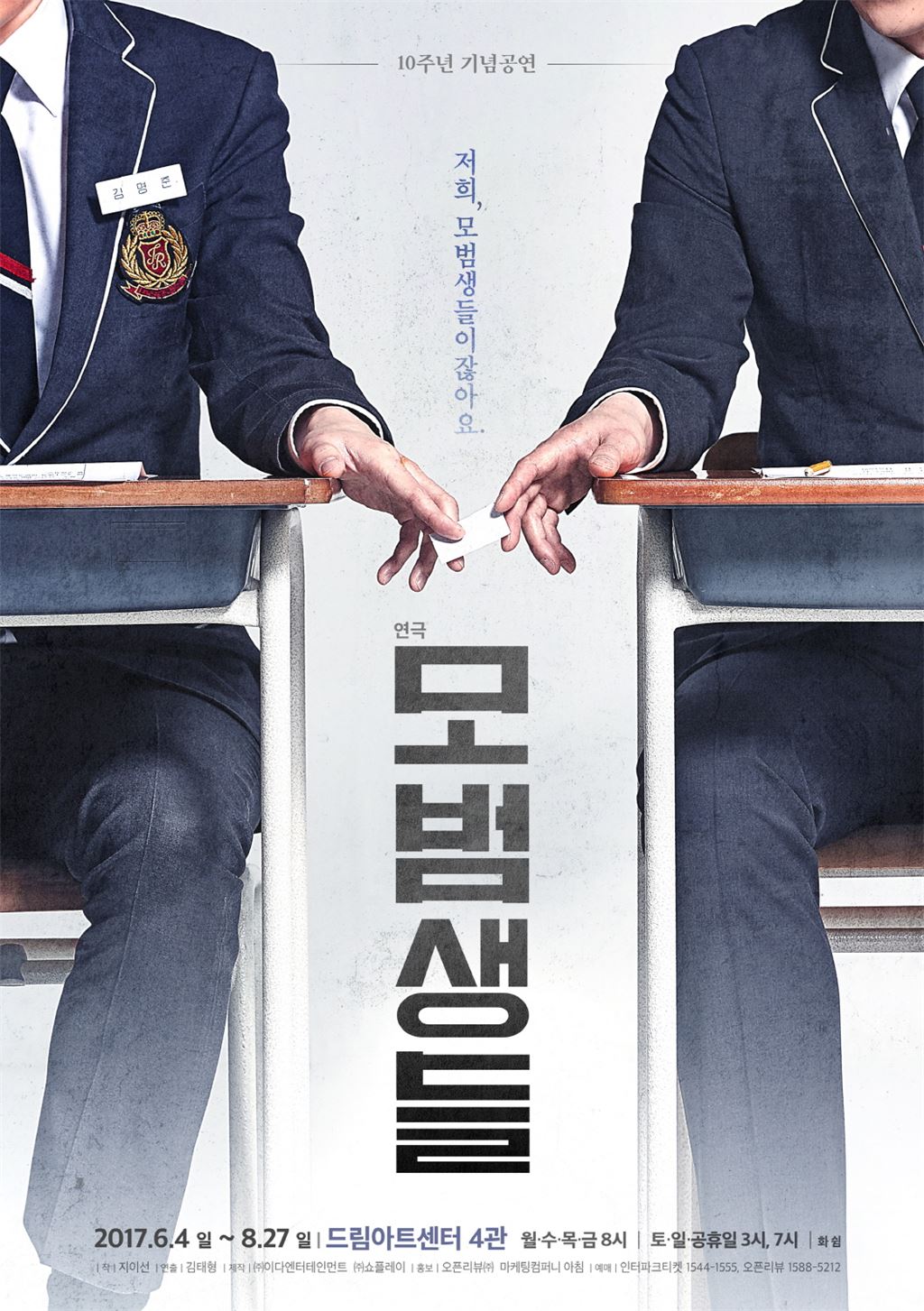[아시아경제 장인서 기자] 연극 '모범생들' 10주년 기념공연이 8월27일까지 서울 대학로 드림아트센터 4관에서 선보인다.'모범생들(김태형 연출·지이선 작)'은 성적을 올리기 위해서라면 수단과 방법을 가리지 않는 고3 학생들의 이야기를 통해 비뚤어진 교육현실과 경쟁사회를 그린다. 2007년 초연 이후 10년간 꾸준히 공연되며 7만명 이상 관객을 동원한 작품이다. 사실적인 대사와 적절하게 배치된 유머, 날카로운 비판의식 등이 어우러져 극 후반까지 탄탄한 긴장감을 유지한다.명문 외국어고등학교 3학년 학생인 '명준'과 '수환'은 부정행위(커닝)를 모의한다. 우연히 이 사실을 알게 된 전학생 '종태'와 답안지를 돈으로 산다는 의혹을 받던 반장 '민영'까지 이들의 계획에 휘말린다. 커닝은 결국 발각됐지만 아무도 처벌받지 않는다. 시간이 흘러 사회에서 엘리트들로 성장한 이들은 민영의 결혼식에서 다시 만나게 된다.10주년 기념공연의 의미를 살려 2007년 초연 당시 출연한 이호영(명준 역), 김슬기(수환 역), 김대종(종태 역), 홍우진(민영 역) 등 원년멤버들과 안세호·김도빈·조풍래·문태유·박은석·권동호·안창용·정휘 등 새 멤버들이 함께 호흡을 맞춘다. 장인서 기자 en1302@asiae.co.kr<ⓒ세계를 보는 창 경제를 보는 눈, 아시아경제(www.asiae.co.kr) 무단전재 배포금지>