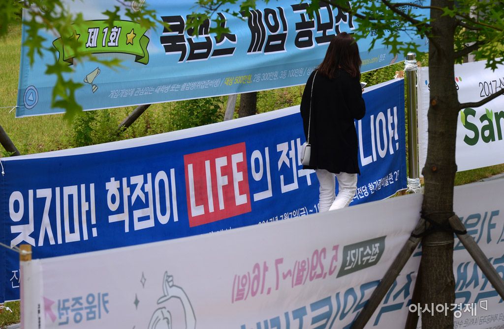 [아시아경제 문호남 수습기자] 기말고사 기간인 9일 서울 서대문구의 한 대학교에서 학생들이 외국어 방학특강 및 공모전, 서포터즈 대외활동 모집 현수막을 지나고 있다. 지난 4월 기준 청년실업률이 11.2%로 사상 최고치를 기록한 가운데 취업을 앞둔 청년들의 고민이 깊어지고 있다.문호남 수습기자 munonam@asiae.co.kr<ⓒ세계를 보는 창 경제를 보는 눈, 아시아경제(www.asiae.co.kr) 무단전재 배포금지>