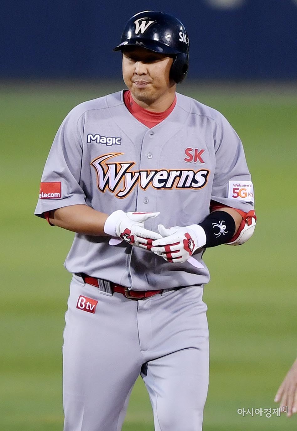 [아시아경제 김현민 기자]프로야구 SK 와이번스와 LG 트윈스의 2017 KBO리그 경기가 9일 잠실구장에서 열렸다. 6회초 2사 2루에서 SK 최정이 좌익동점 1타점 2루타를 치고 출루하고 있다.김현민 기자 kimhyun81@asiae.co.kr<ⓒ세계를 보는 창 경제를 보는 눈, 아시아경제(www.asiae.co.kr) 무단전재 배포금지>