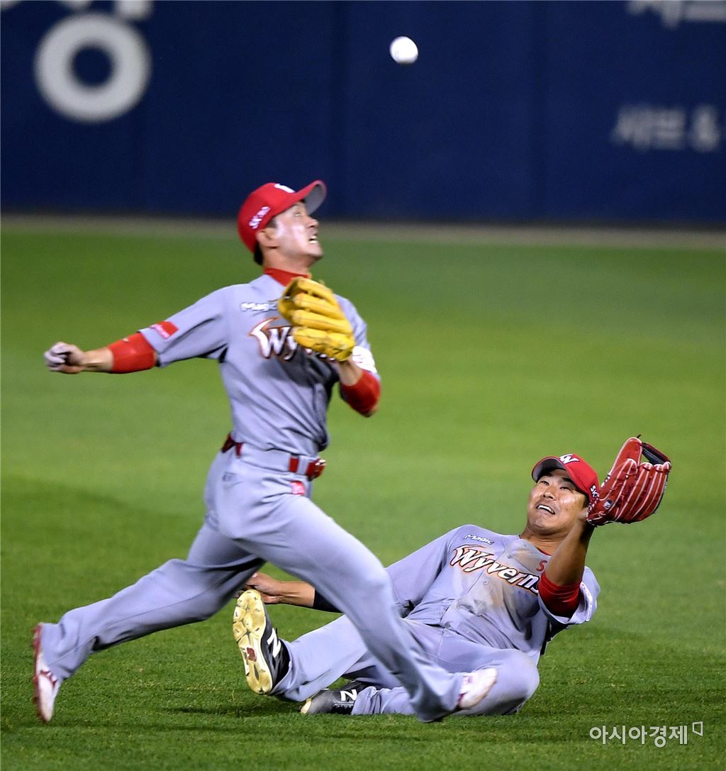 [아시아경제 김현민 기자]프로야구 SK 와이번스와 LG 트윈스의 2017 KBO리그 경기가 9일 잠실구장에서 열렸다. 7회말 2사 2루에서 SK 우익수 한동민이 2루수 김성현과 스치며 LG 조윤준의 타구를 놓치고 있다.김현민 기자 kimhyun81@asiae.co.kr<ⓒ세계를 보는 창 경제를 보는 눈, 아시아경제(www.asiae.co.kr) 무단전재 배포금지>