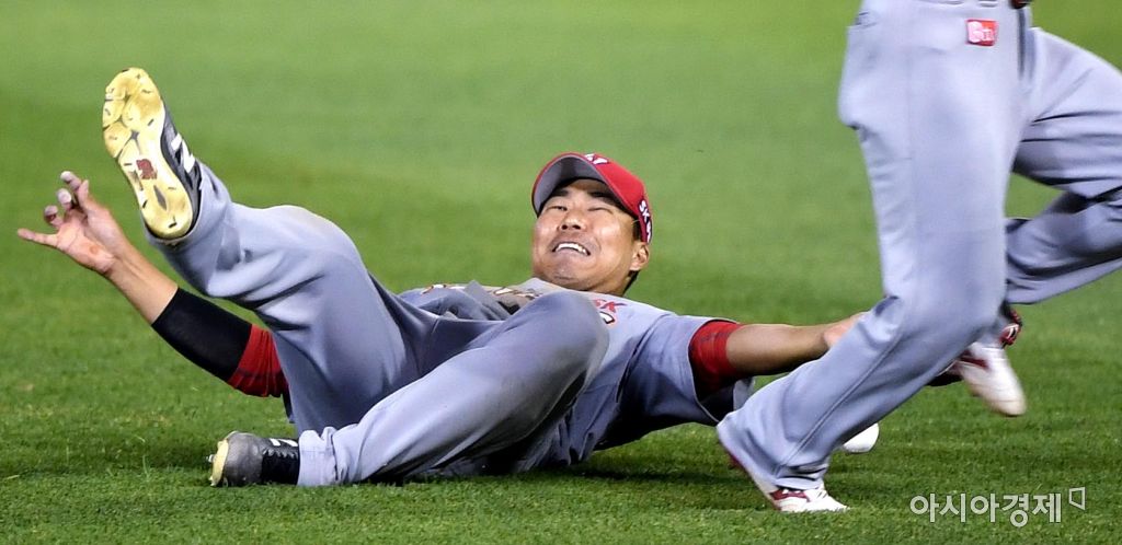 [포토]한동민, '타구 놓치며 역전타 허용'