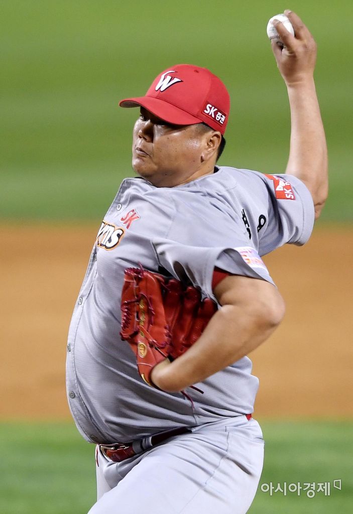 [아시아경제 김현민 기자]프로야구 SK 와이번스와 LG 트윈스의 2017 KBO리그 경기가 9일 잠실구장에서 열렸다. 7회말 SK 구원투수 채병용이 역투하고 있다.김현민 기자 kimhyun81@asiae.co.kr<ⓒ세계를 보는 창 경제를 보는 눈, 아시아경제(www.asiae.co.kr) 무단전재 배포금지>