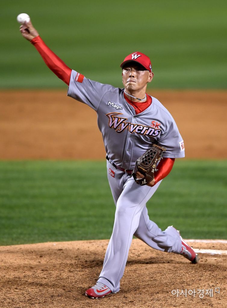[아시아경제 김현민 기자]프로야구 SK 와이번스와 LG 트윈스의 2017 KBO리그 경기가 9일 잠실구장에서 열렸다. 8회말 SK 구원투수 박정배가 역투하고 있다.김현민 기자 kimhyun81@asiae.co.kr<ⓒ세계를 보는 창 경제를 보는 눈, 아시아경제(www.asiae.co.kr) 무단전재 배포금지>