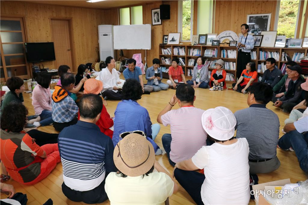 11일 오전 천관산 문학공원을 둘러본 작가회 일행은 회진면에 자리한 이청준 작가의 생가를 방문했다. 이청준 작가 생가에서는 문화관광해설사의 설명으로 이청준 작가의 성장 배경과 문학세계에 대해 들여다봤다. 이어 단편소설 ‘선학동 나그네’의 배경으로 알려진 회진면 선학동 마을 찾는 것을 끝으로 문학포럼의 모든 일정을 마무리했다. 김경수 회장은 “장흥이 낳은 문학의 거장들을 만나고 그들의 자취와 숨결을 느낄 수 있는 시간이었다”며, “문학포럼 추진에 도움을 준 장흥군에 감사한다”고 말했다.노해섭 기자 nogary@ <ⓒ세계를 보는 창 경제를 보는 눈, 아시아경제(www.asiae.co.kr) 무단전재 배포금지>