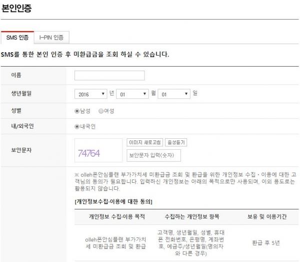 KT가 휴대폰 분실, 파손 보상서비스 ‘올레폰안심플랜’을 이용해 소비자에게 걷은 부가세를 환급해주고 있는 가운데 환급 방법에 관심이 쏠리고 있다. 우선 환급 대상 여부는 KT 공식홈페이지인 올레닷컴에 별도의 회원가입 없이 휴대폰 번호 조회만으로 자신의 환급금을 확인할 수 있다.사진=환급금 조회를 위한 인증화면 캡처