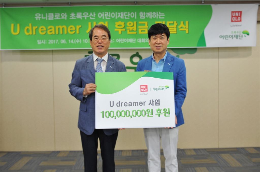 [아시아경제 조호윤 기자]유니클로는 아동복지전문기관 초록우산 어린이재단에 지난 5월 진행된 '유니클로 감사제' 수익금 중 1억원을 기부하고 저소득층 인재를 지원하는 '유 드리머' 사업을 출범한다고 14일 밝혔다. 올해는 감사제 수익금 1억원 기부와 더불어 초록우산 어린이재단과 공동으로 유 드리머 사업을 새롭게 출범했다. 유드리머는 스포츠, 예술, 학업 등 다양한 분야에 재능을 지닌 12명의 아동들을 선발, 경제적 어려움으로 교육이 중단되지 않고 재능계발을 지속할 수 있도록 오는 12월까지 8개월간 1인당 매달 75만원을 지원하는 사업이다. 하반기에는 청소년들에게 꿈과 응원의 메시지를 전하는 '유니클로와 함께 하는 유 드리머 토크콘서트'도 개최할 계획이다.홍성호 에프알엘코리아 유니클로 대표는 "소득에 따른 사교육비 격차가 갈수록 심화되고 복지사각지대에 놓인 아동이 증가하는 등 어느 때보다 아이들을 향한 따뜻한 관심과 도움의 손길이 필요한 실정"이라며 "재능과 실력을 갖춘 어린이 및 청소년이 경제적인 제약없이 자신의 꿈을 펼칠 수 있는 사회를 만들어 나갈 것"이라고 전했다. 조호윤 기자 hodoo@asiae.co.kr<ⓒ세계를 보는 창 경제를 보는 눈, 아시아경제(www.asiae.co.kr) 무단전재 배포금지>