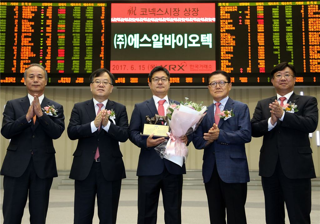 [아시아경제 권성회 기자] 한국거래소 코스닥시장본부는 15일 오전 8시40분부터 서울사옥 홍보관에서 기능성 화장품을 제조ㆍ공급하는 에스알바이오텍의 코넥스시장 신규상장기념식을 개최했다고 이날 밝혔다.상장기념패 전달 후 기념촬영. 사진 왼쪽부터 최규준 한국IR협의회 부회장, 김재준 한국거래소 코스닥시장위원회 위원장, 송병호 에스알바이오텍 대표이사, 김환식 코넥스협회 부회장, 한성원 교보증권 IB금융본부장권성회 기자 street@asiae.co.kr<ⓒ세계를 보는 창 경제를 보는 눈, 아시아경제(www.asiae.co.kr) 무단전재 배포금지>