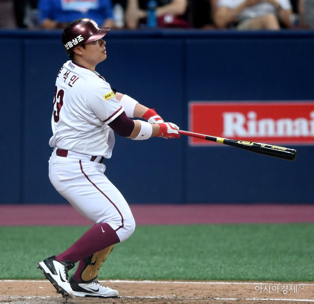 [아시아경제 김현민 기자]프로야구 롯데 자이언츠와 넥센 히어로즈의 2017 KBO리그 경기가 17일 서울 고척돔에서 열렸다. 3회말 1사에서 넥센 윤석민이 롯데 선발 박시영을 상대로 추가 솔로 홈런을 치고 있다. 김현민 기자 kimhyun81@asiae.co.kr<ⓒ세계를 보는 창 경제를 보는 눈, 아시아경제(www.asiae.co.kr) 무단전재 배포금지>