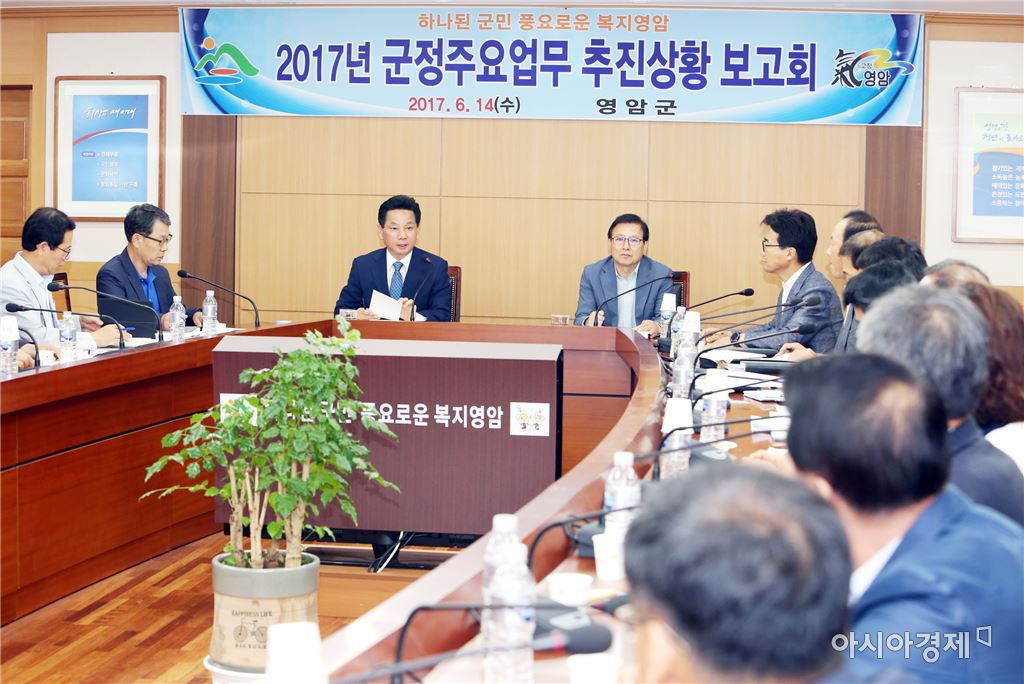 전동평 군수,“소통하는 업무보고회”군정현안 점검 "군민행복시대 완성 위해 최선 다해 달라 당부"[아시아경제 노해섭 기자]영암군은 지난 14일 전동평 군수와 황인섭 부군수, 실과소장과 읍면장 등 관계공무원 40명이 참석한 가운데 2017년 군정주요업무 추진상황 보고회를 가졌다. 이날 보고회에서는 민선6기 공약과 군정주요 현안사업에 대하여 영상을 통한 PPT 보고 형식으로 진행되어 군정 발전방안에 대하여 다양한 의견을 제시하는 등 소통과 협업의 시간을 가졌다. 민선6기 공약사항 66건을 분석한 결과, 46개사업은 완료, 기타 사업은 정상 추진중에 있는 것으로 나타났으며, 공약 지표별 추진율이 90.2%를 보이고 있어 전국에서도 공약이행율이 최고를 차지하고 있는 것으로 나타났다. 또한, 매월 첫째주‘월요토론회’를 통해 군정발전에 대한 제안과 토론의 장을 마련하고 있으며, 지난달에는“전략적인 관광 마케팅 전략과 중저가 특화음식 개발 및 보급 방안”에 대한 의견을 교환했다. 군은 상반기 동안, 각종 수상실적에서도 두각을 나타냈다. 문화체육관광부 3년연속 국가축제 지정, 광주·전남 지방자치 최고경영대상 등 언론분야 4관왕 그랜드슬램 달성, 2년연속 대한민국 소비자대상, 한국에서 가장 사랑받는 브랜드대상을 수상 했다. 또한, 국?도비 공모사업에 인적네트워크와 공격적·전략적 응모를 통해 국도비사업 14건 661억원, 공모사업 30건 199억원, 특별교부세 2건 5억원, 2018년 지특회계 34건 142억원 등 총 80건 1,007억원을 확보하는 성과를 거양했다. 특히, 선진복지의 롤 모델로 각광받는 어르신 이용권 사업과, 100월택시, 천원버스, 장애인 콜택시 등 교통복지시책과 4대핵심발전 전략산업으로 추진중인 농업의 6차 산업화를 통한 생명산업 집중 육성과 문화관광·스포츠산업, 미래첨단산업인 드론·경비행기·자동차튜닝산업 등 군정 전반이 차질 없는 추진되고 있는 것으로 나타났다. 하반기에도 한국 트로트가요센터, 하정웅 미술관 창작교육관 건립, 도갑권역 문화공원 조성사업, 국립종자원 벼종사 정선시설 추진, 국민여가 캠핑장 조성, 마을정비형 공공주택 건립, 수산물 유통 가공 물류센터 건립, 농어촌 지방상수도 개발사업을 대규모 사업이 차질없이 추진될 수 있도록 면밀하게 추진상황을 점검했다. 이밖에도 군민 안전과 직결되는 CCTV 통합관제센터 운영과 취약지 방범가로등 설치, 당직의료기관 운영 및 농어촌의료서비스 개선사업, 명품 교육환경 조성 등 내실있는 군정업무 추진으로 군민을 위한 현장 확인행정, 섬김행정·찾아가는 서비스행정을 위해 총력을 경주하기로 했다. 전동평 군수는 “그동안 추진된 주요사업에 대한 철저한 점검을 통해 하반기 사업 추진에 박차를 가하고, 앞으로 계획된 사업들도 면밀히 살펴 더 나은 방안과 효율적인 추진으로‘군민행복시대 완성’을 위해 최선을 다해주길 바란다”고 말했다. 노해섭 기자 nogary@<ⓒ세계를 보는 창 경제를 보는 눈, 아시아경제(www.asiae.co.kr) 무단전재 배포금지>