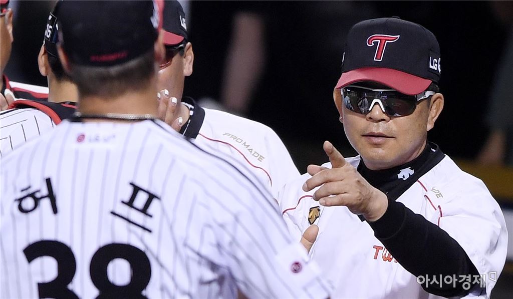 [아시아경제 김현민 기자]프로야구 삼성 라이온스와 LG 트윈스의 2017 KBO리그 경기가 20일 잠실구장에서 열렸다. LG 양상문 감독이 5-3 승리를 확정한 뒤 완투승을 거둔 허프와 기뻐하고 있다. 김현민 기자 kimhyun81@asiae.co.kr<ⓒ세계를 보는 창 경제를 보는 눈, 아시아경제(www.asiae.co.kr) 무단전재 배포금지>
