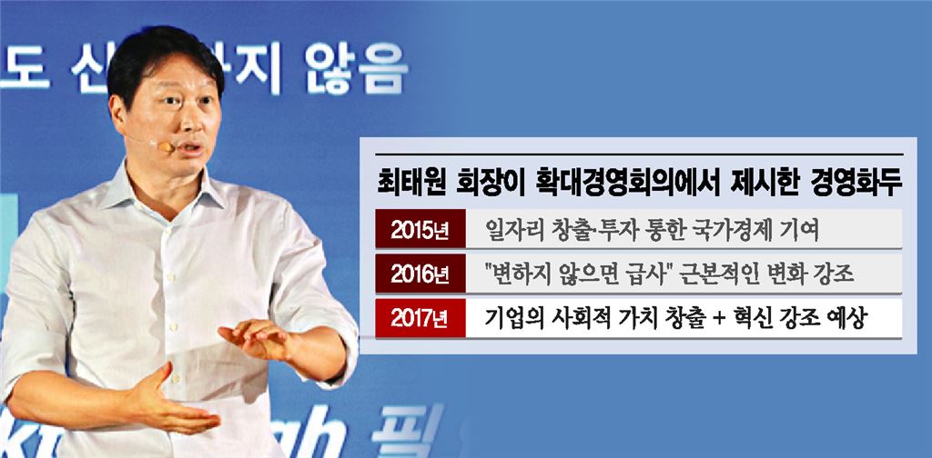 -2011년 어려운 시기에 하이닉스 인수전 참여-SK하이닉스 인수후 반도체 공부에 매달려-문외한에서 이젠 반도체 전문가로 -뒤늦게 뛰어든 도시바 인수전, 오너십으로 반전성공-슬로데스이어 서든데스로 혁신주문 -딥체인지 2.0로 '변화와 혁신, 사회적책무' 추진[아시아경제 이경호 기자]SK하이닉스가 21일 미국과 일본 연합과 함께 일본 도시바 반도체부문을 인수하면서 SK하이닉스는 2012년 SK그룹에 인수된 이후 5년 만에 D램과 낸드라는 반도체의 양대 고지를 모두 선점하는 반도체 제국으로 가는 길의 새로운 장을 열었다. SK그룹으로서도 도시바 인수전에서의 성공은 그룹의 성장엔진을 모태인 섬유를 넘어 에너지와 통신, 반도체라는 삼각 편대의 캐쉬카우(현금창출)의 진용을 갖추는데 성공한 것이다. 그룹 역사의 고비마다 최태원 회장의 승부사적 기질이 밑바탕이 됐지만 그 이면에는 최 회장의 끊임없는 열공(열심히 공부)이 있었다. 최 회장이 하이닉스를 인수하던 시기나 이번 도시바 반도체부문 인수 모두 최 회장과 그룹으로서는 호(好)시절은 아니었다. SK텔레콤이 하이닉스에 입찰하기로 한 2011년 말에는 최태원 회장 등 그룹 총수 형제에 대한 검찰 수사가 진행된 시기었다. 그럼에도 하이닉스 인수전에 뛰어든 것은 신성장 동력이 절실했기 때문이다. 통신과 반도체가 시너지가 나는 사업임은 분명하지만 최 회장은 '반도체 문외한'이었다. 최 회장은 최근 한국과학기술원(KAIST) 대학원생 특강에서 "당시 반도체도 잘 몰랐지만 해야 한다고 생각돼 한 것이었다"며 "3~4년 하다 보니 이제는 전문가가 하는 이야기를 알아들을 정도는 됐다"고 말했다. 최 회장은 "사회가 바뀌면 유연하게 변신해야 한다. 내가 예전에 반도체를 알았겠나. 해야 한다고 하니까 매일 책도 읽고 어떻게든 열심히 해서 이제는 비즈니스 판단을 할 정도까지 오게 됐다"고 했다. 아쉬운 점은 하이닉스 이후 2012년 매물로 나온 일본 반도체기업 엘피다 인수불발이다. 당시 최 회장은 의지가 강했지만 이사회의 반대로 인수전에 불참했다. 훗날 이를 두고 두고 후회했다고 한다.이번 도시바 인수전 참여도 안팎에서 쉽지 않은 상황이었다. 도시바 인수전이 한창일때 출국금지조치로 해외로 나가지 못했고 어수선한 정국 속에서 경영의 보폭을 넓히기 어려웠다. 인수전에도 뒤늦게 참여했다. 애초 10파전이던 인수전은 한미일 3국 연합과 미국 브로드컴, 웨스턴디지털, 대만의 홍하이그룹 등의 4파전으로 펼쳐졌다. 인수금액은 미국 브로드컴이 더 높아 애초 우선협상대상자로 선정이 유력했고 대만 홍하이그룹도 인수의지가 강했지만 일본 정부의 정책적 판단에 따라 한미일 3국 연합이 최종 낙점됐다. 특히 최 회장이 지난 4월 일본을 방문해 인수전을 진두지휘하면서 인수전의 판도를 SK하이닉스에 유리한 방향으로 바꾸는데 결정적이었다는 평가다. 최 회장은 2004년 그룹 회장을 맡은 이후부터 그룹 경영진과 임직원들에 끊임없는 변화와 혁신을 강조해왔다. 하이닉스 인수 전후에는 "이대로가면 성장이 정체하다가 고사(枯死)한다면서 '슬로 데스(Slow Death)'를 강조했다. 작년 7월 확대경영회의에서는 "변화하지 않는 기업은 슬로(느린)가 아니라 서든데스(Sudden Death·갑작스러운 죽음)가 될 수 있다"를 강조했다. 그리고 지난 1월에는 '딥 체인지(Deep Change·근원적 변화)'를 통한 새로운 가치 창출'을 경영방침으로 정했다. 최 회장은 지난 19일 확대경영회의에서 '지속적인 변화·혁신'과 '기업의 사회적 책무'로 요약된 딥체인지 2.0을 강조했다. 최 회장은 "최근 우리 사회가 단기간에 이뤄낸 고도성장 속에서 의도치 않았던 양극화와 같은 사회·경제적 이슈가 발생할 뿐 아니라 심각해지고 있다"면서 "앞으로 SK는 대기업으로서 무거운 책임감을 느끼면서 사회문제 해결에 SK CEO와 임직원들이 더욱 더 적극적으로 나서야 한다"고 독려했다.최 회장은 이어 "서로 다른 비즈니스 모델과 기술들이 융합되는 4차 산업혁명 시대에서는 우리가 미처 생각하지 못했던 자산이 큰 가치를 가지는 경우가 많다"면서 "SK가 보유한 유무형의 역량이 SK는 물론 사회와 함께 발전하는 토대가 될 수 있도록하자"고 강조했다. 이경호 기자 gungho@asiae.co.kr<ⓒ세계를 보는 창 경제를 보는 눈, 아시아경제(www.asiae.co.kr) 무단전재 배포금지>