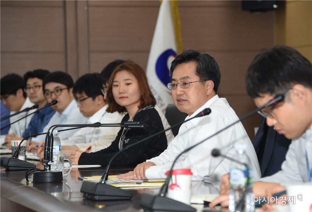 김동연 경제부총리 겸 기획재정부 장관이 6월 20일 정부세종청사에서 '조직문화 개선을 위한 직원들과의 간담회'에서 인사말을 하고 있다.