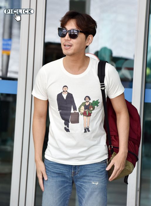 [포토] 최원영 '레옹 마틸다, 시선 강탈 티셔츠 그림' (공항패션)