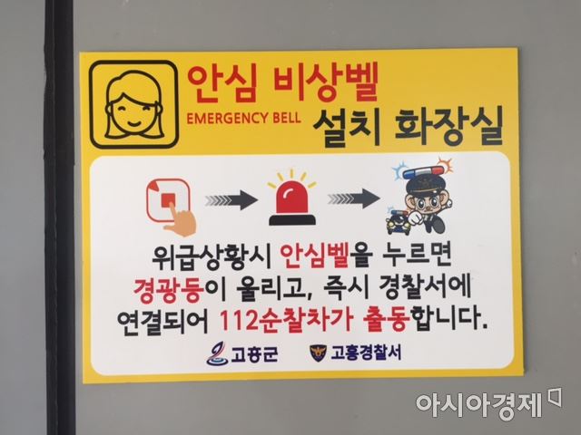 전남 고흥군이 이용 빈도수가 높은 재래시장 및 해수욕장 등의 공중화장실 27곳에 안심비상벨을 설치·운영한다.