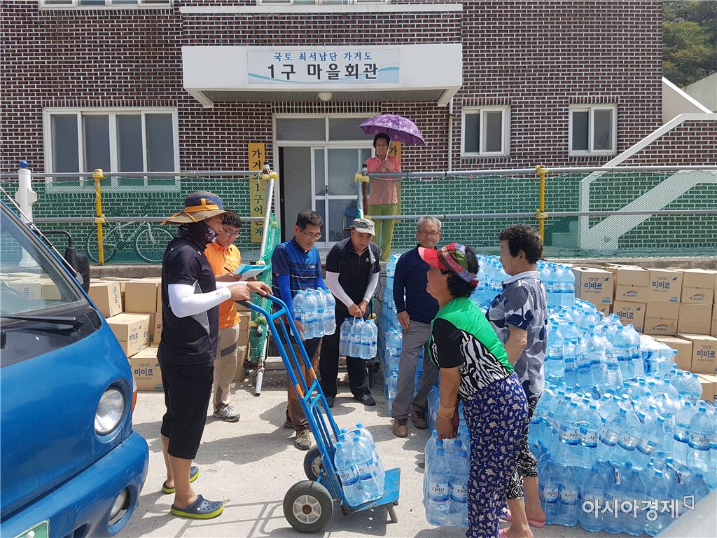 전남 신안군이 계속되는 가뭄으로 식수난을 겪고 있는 국토 최서남단 흑산면 가거도 주민들에게 지난 22일, 생수 1.8ℓ 3864병을 긴급 지원했다.