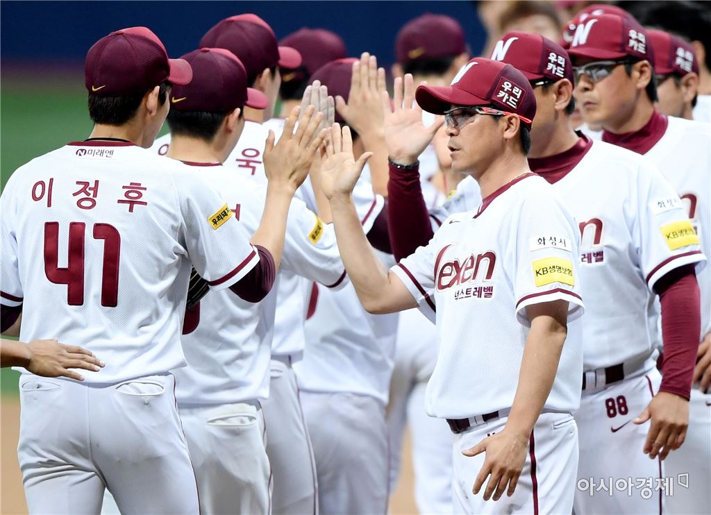 [아시아경제 김현민 기자]프로야구 LG 트윈스와 넥센 히어로즈의 2017 KBO리그 경기가 23일 서울 고척돔에서 열렸다. 넥센 장정석 감독이 8-3 승리를 확정한 뒤 선수들과 기뻐하고 있다. 김현민 기자 kimhyun81@asiae.co.kr<ⓒ세계를 보는 창 경제를 보는 눈, 아시아경제(www.asiae.co.kr) 무단전재 배포금지>
