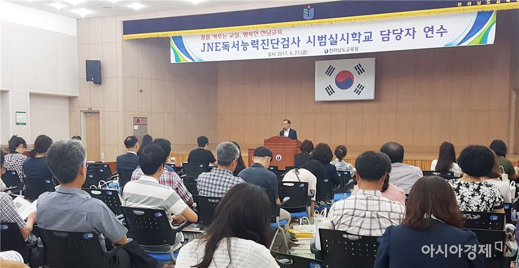 [아시아경제 노해섭 기자]전남도교육청(교육감 장만채)은 지난 23일 본청 대회의실에서 독서능력진단검사 시범실시학교 교감 및 담당교사 200여명을 대상으로 독서능력진단결과 활용 방법과 맞춤형향상 프로그램 적용 방법에 대한 연수를 실시했다.장만채 교육감은 전남에서 추진하고 있는 독서·토론수업의 활성화를 위해 학생들의 독서능력을 정확히 진단하고, 그에 따른 과학적인 맞춤형 처방의 필요성을 강조해 왔다.도교육청은 지난 2015년 교육청 단위 최초로 독서능력진단도구 개발을 착수해 2017년 5월 한국저작권위원회에 ‘JNE독서능력진단검사 도구’저작권 등록을 마친 상태다.JNE독서능력진단검사 도구는 독서교육에 대한 풍부한 경험을 갖춘 현직교사들과 전문가 교수들이 합동으로 개발했다.개발 영역은 학년군별 초3·4, 초5·6, 중1·2학년용 3Set로 구성되어 있으며, 내용은 독서태도(정의적 영역)와 독해능력(인지적 영역)으로 이루어졌다.올해는 검사 결과에 따른 영역별 맞춤형 향상 프로그램(어휘력, 내용이해력, 비판감상력)까지 개발 했다.3년의 개발과정을 거쳐 지난 5월 희망학교 100개교 11,000여명 학생들이 독서능력진단검사에 참여했다.검사 결과에 따라, 학생들에게는 독서능력진단 검사결과리포트와 맞춤형향상 프로그램이 제공됐으며, 추후 독서능력 결과리포트를 음성으로 들을 수 있는 인공지능 스피커까지 제공됐다. 연수에 참석한 소호초등학교 조유순 교사는 “평소 아이들의 독서능력을 측정하고 싶었으나, 비용 때문에 어려웠다”며 “교육청 차원에서 도구를 개발하고 진단과 함께 맞춤형 향상 프로그램까지 제공해 줘서 효과적으로 활용하겠다”고 말했다.김영증 정책기획관은 “전남의 독서토론수업이 현장에 정착되고 활성화되기 위해 무엇보다 독서의 기초체력이 중요하다”면서 “과학적 진단과 처방으로 독서능력을 향상시켜주는 것이 학교와 교사의 임무이다. 독서·토론교육을 통해 아이들을 미래사회에 살아갈 창의융합인재로 양성해 달라”고 당부했다.노해섭 기자 nogary@<ⓒ세계를 보는 창 경제를 보는 눈, 아시아경제(www.asiae.co.kr) 무단전재 배포금지>
