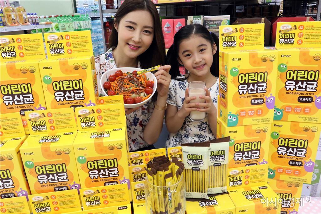 26일 오전 서울 한강로 이마트 용산점에서 모델들이 이마트 어린이 유산균을 선보이고 있다.