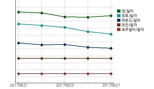 6월 27일 12시 현재 국제시장환율은 달러/유로 환율은 전일대비 0.16%(0.0018달러) 오른 1유로에 1.1211달러이고, 달러/영국 파운드 환율은 전일대비 0.14%(0.0019달러) 오른 1파운드에 1.2737달러이고, 중국 위안/달러 환율은 전일대비 0.05%(0.0039위안) 오른 1달러에 6.8406위안이고, 일본 엔/달러 환율은 전일대비 0.08%(0.0900엔) 오른 1달러에 111.3700엔이다아경봇 기자 r2@asiae.co.kr<ⓒ세계를 보는 창 경제를 보는 눈, 아시아경제(www.asiae.co.kr) 무단전재 배포금지>