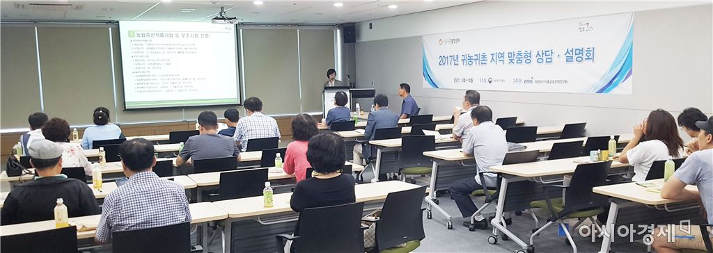 "청정보성에서 인생 제2막 시작하세요"[아시아경제 노해섭 기자]보성군(군수 이용부)은 지난 23일 서울 양재동 aT센터에서 도시민 30여명을 대상으로‘찾아가는 귀농귀촌 맞춤형 설명회’를 개최했다. 설명회는 귀농귀촌 희망 도시민에게 군에서 추진하고 있는 지원정책과 현장중심의 지역정보 및 상담서비스를 제공하고, 7월 20일, 8월 18일, 9월 27일, 10월 20일 aT센터내 귀농귀촌종합센터 지자체 강의실에서 매월 1회 열릴 예정이다. 귀농귀촌 업무를 담당하는 군 담당자와 보성군귀농귀촌협의회 소속 귀농인이 준비과정, 정책 설명, 사례발표, 성공 노하우 전수 등을 통해 도시민에게 귀농귀촌에 대한 궁금증을 해소하는 시간을 가져 큰 호응을 얻었다. 참여방법은 농림수산식품교육문화정보원 귀농귀촌종합센터에 전화(1899-92097) 또는 인터넷(www.returnfarm.com)을 통해 신청 가능하다.군 관계자는 “도시로 찾아가는 귀농귀촌 정책서비스와 홍보를 확대하고 수요자 중심의 설명회 운영으로 역량 있는 도시 청년들이 귀농귀촌 할 수 있도록 도시민 유치에 최선을 다해 활력 넘치는 보성군을 만들 계획이다”고 말했다. 한편, 보성군은 지난 2월‘도시민 농촌유치 공모사업’에 선정되어 올해부터 2019년까지 매년 2억원씩 지원받아 귀농귀촌인 유치를 한다. 또한, ‘귀농귀촌지원센터’를 이달 말까지 2억원을 들여 리모델링하여 귀농귀촌인 체류시설과 교육장, 회의실 등 다목적 공간으로 조성할 예정이다. 노해섭 기자 nogary@<ⓒ세계를 보는 창 경제를 보는 눈, 아시아경제(www.asiae.co.kr) 무단전재 배포금지>
