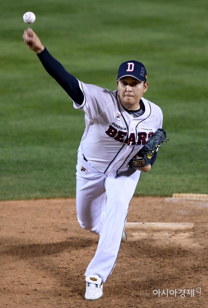 [아시아경제 김현민 기자]프로야구 SK 와이번스와 두산 베어스의 2017 KBO리그 경기가 28일 잠실구장에서 열렸다. 8회초 1사에서 두산 구원투수 김강률이 역투하고 있다. 김현민 기자 kimhyun81@asiae.co.kr<ⓒ세계를 보는 창 경제를 보는 눈, 아시아경제(www.asiae.co.kr) 무단전재 배포금지>