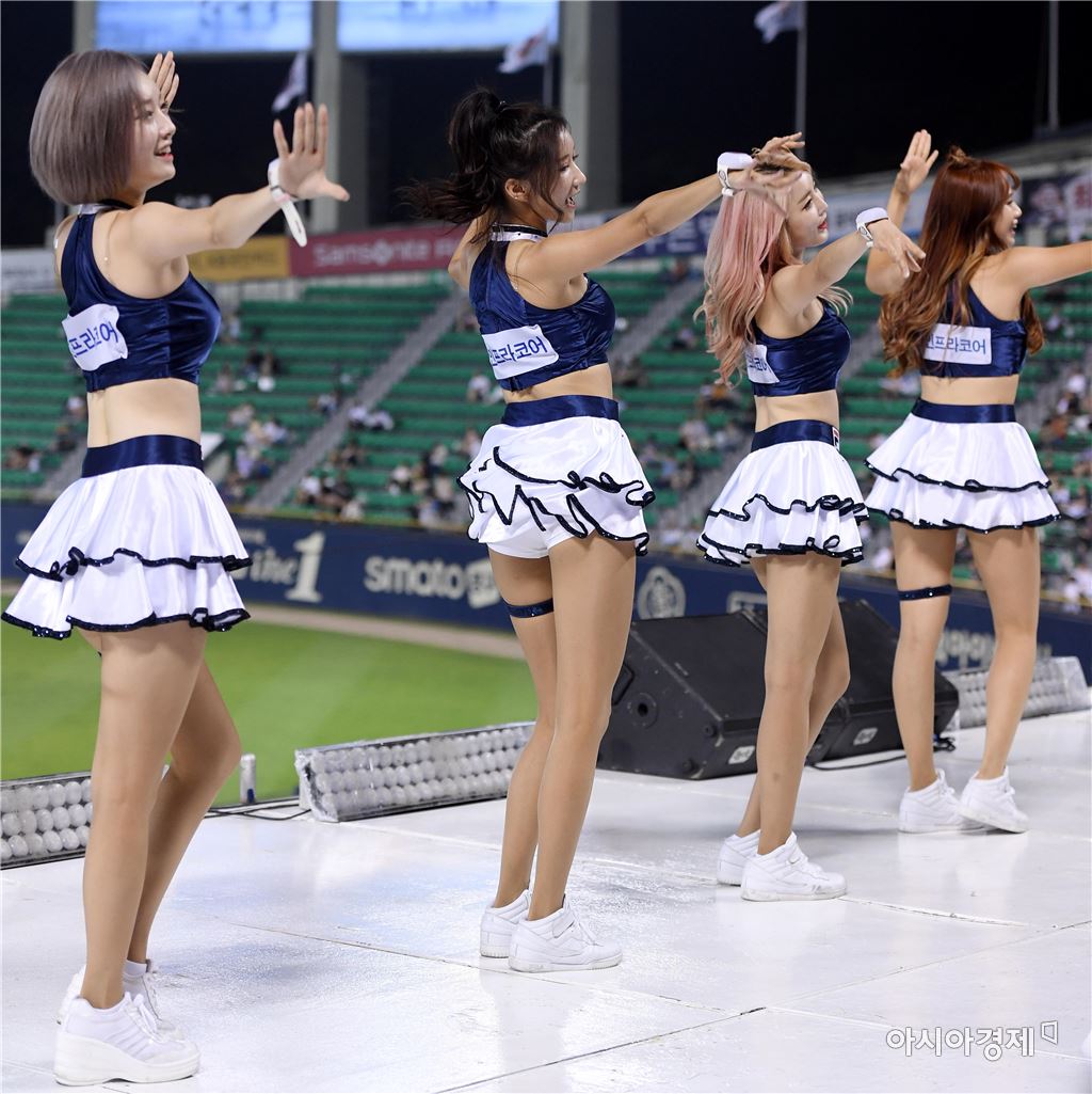 [아시아경제 김현민 기자]프로야구 SK 와이번스와 두산 베어스의 2017 KBO리그 경기가 28일 잠실구장에서 열렸다. 두산 치어리더가 흥겨운 공연을 선보이고 있다. 김현민 기자 kimhyun81@asiae.co.kr<ⓒ세계를 보는 창 경제를 보는 눈, 아시아경제(www.asiae.co.kr) 무단전재 배포금지>