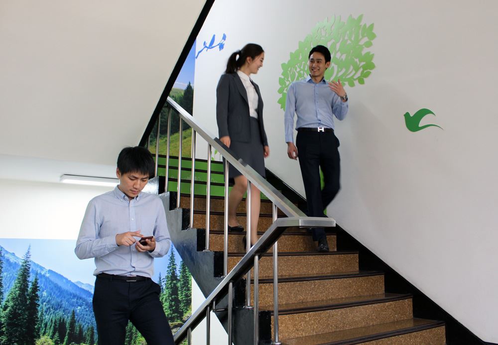 지하 2층에서부터 지상 10층까지 계단마다 숲길을 연상시키는 사진과 소품을 설치했다. 계단에 발을 내디디면 센서가 자동으로 감지해 새소리, 시냇물 흐르는 소리 등 자연의 소리가 흘러나온다. 계단 곳곳에는 칼로리 소모량을 표시해놓았다. 또 블루투스를 활용한 스마트폰 애플리케이션으로 계단 이용 시 직원들 스스로 운동량과 이동거리를 확인할 수 있게 했다.건강계단이 생기기 전까지 직원들 대부분이 편한 엘리베이터를 이용했다. 하지만 이제는 직원들이 출퇴근, 점심시간과 업무 중 틈틈이 계단을 오르내리며 건강을 챙긴다. 개인 운동시간을 따로 내지 않아도 건강관리를 할 수 있다. 직원들의 사기 증진을 위해 연말에 '계단 오르기 왕(가칭)' 선발대회도 열고 시상할 계획이다.
