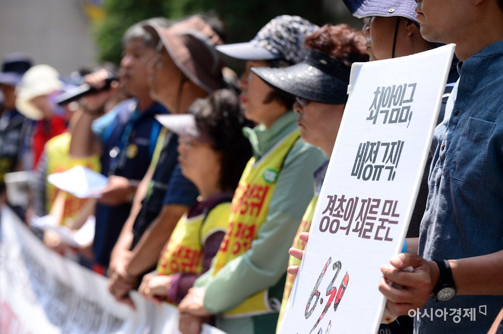 [아시아경제 문호남 수습기자] 전국민주노동조합총연맹 관계자들이 29일 서울 마포구 경총회관 앞에서 열린 '최저임금 1만원 쟁취 경총 규탄 기자회견'에서 구호를 외치고 있다. 문호남 수습기자 munonam@asiae.co.kr<ⓒ세계를 보는 창 경제를 보는 눈, 아시아경제(www.asiae.co.kr) 무단전재 배포금지>