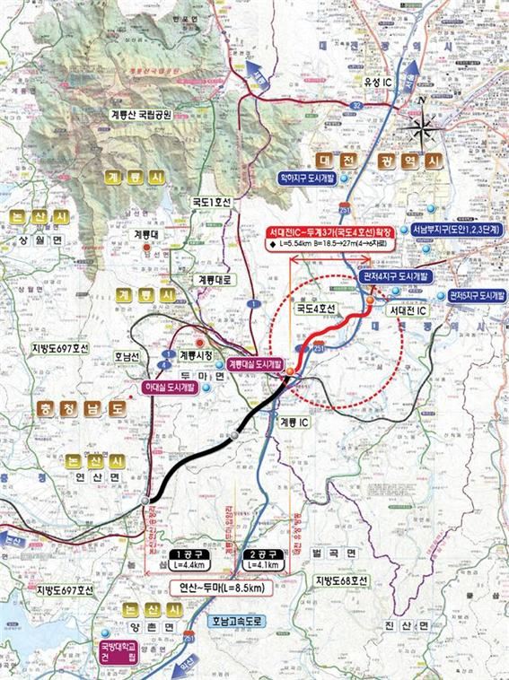서대전IC~두계3가(국도4호선) 도로확장공사 노선도. 대전시 제공