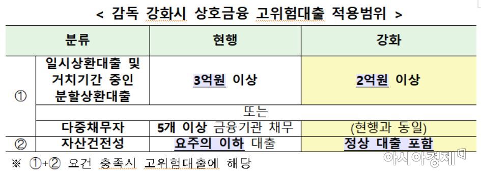 상호금융 2억원 이상 일시상환 부동산담보대출 연체 여부 상관 없이 추가충당금 쌓아야