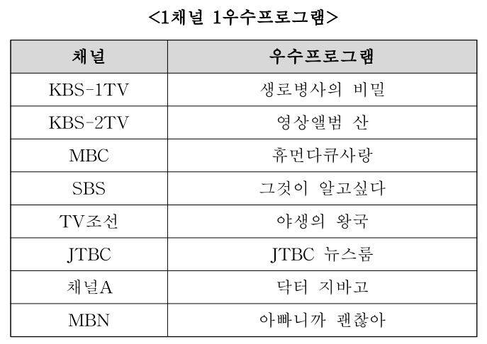 정보통신정책연구원 발표KBS-1TV의 '생로병사의 비밀', SBS의 '그것이 알고싶다' 등이 올해 2분기 시청자가 꼽은 우수프로그램에 선정됐다.